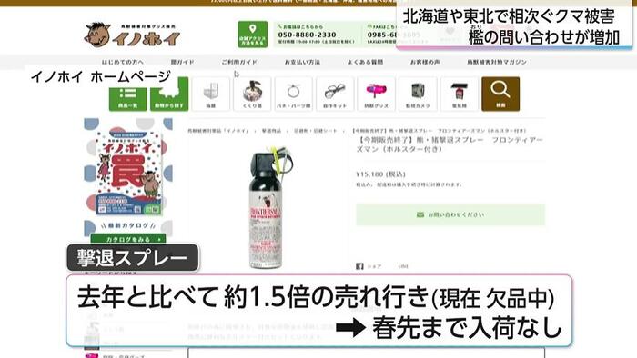現在、撃退スプレーは欠品状態となっており、春先まで入荷はない見通しだ。