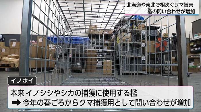 宮崎市の「イノホイ」は、動物による農業被害対策として、罠や檻などを販売する企業だ。本来イノシシやシカの捕獲に使用する檻が、2025年の春ごろからツキノワグマの捕獲用として問い合わせが増え、売れているとう。