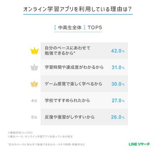 LINEリサーチ、全国の中高生を対象に、学校外での学習状況や進路に関する調査を実施