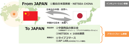 特に、巨大なポテンシャルを持つ海外市場を重要な戦略エリアと位置づけ、グローバルな視点での事業展開を加速させています。中国をはじめとする商品供給力を強みに、ライブコマース事業にも取り組んでいます。