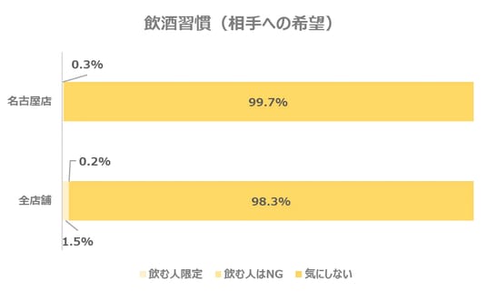 お相手に求める飲酒の習慣についてのデータを見てみると、全店舗とほぼ同様の結果となりました。