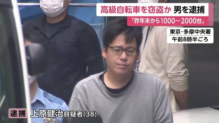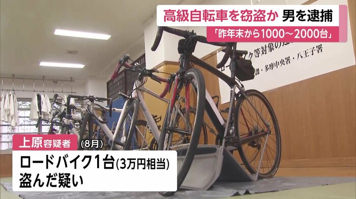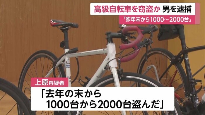 上原容疑者は「ロードバイクは高く売れるので狙った」と容疑を認めているほか、「去年の末から1000台から2000台盗んだ」とも話しているという。