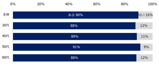 1:9割がセカンドキャリアについて検討。検討理由は「価値観に合う仕事をしたい」。(図1~2)「セカンドキャリア(人生の節目におけるキャリアチェンジ)について考えることはありますか?」と伺うと、90%が「ある」と回答しました。「ある」と回答した方に考える理由を伺うと、最多は「自分の価値観に合った働き方をしたいから」(55%)でした。