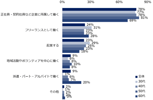 【図3】セカンドキャリアではどんな働き方を希望しますか?(複数回答/年代別)
