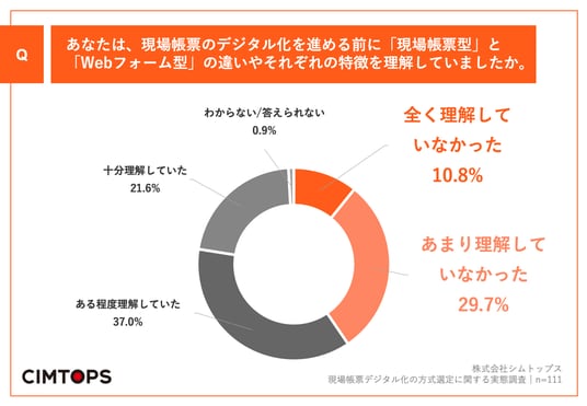 現場帳票のデジタル化を担当した製造業の現場責任者111名を対象にした調査では、4割超が「帳票型」と「Webフォーム型」の違いを理解せずに導入しており、約9割が「違う方式にすればよかった」と回答しました。多くの現場では、紙やExcelをそのままデジタル化する「帳票型」と、シンプルな入力画面を構築する「Webフォーム型」という二つの方式が存在します。しかし、その違いが明確に共有されないまま、ベンダー任せ・スピード優先で選定が進むケースが少なくありません。結果として、業務特性に合わない仕組みが導入され、現場が使いにくさを抱える構造が生まれています。
