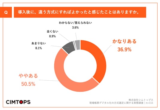 これらの課題について、「導入前に想定できていなかった」と答えた人が約半数に達しています。つまり、現場で発生する作業負荷や連携の難しさを、導入時点で十分に把握していなかったということです。