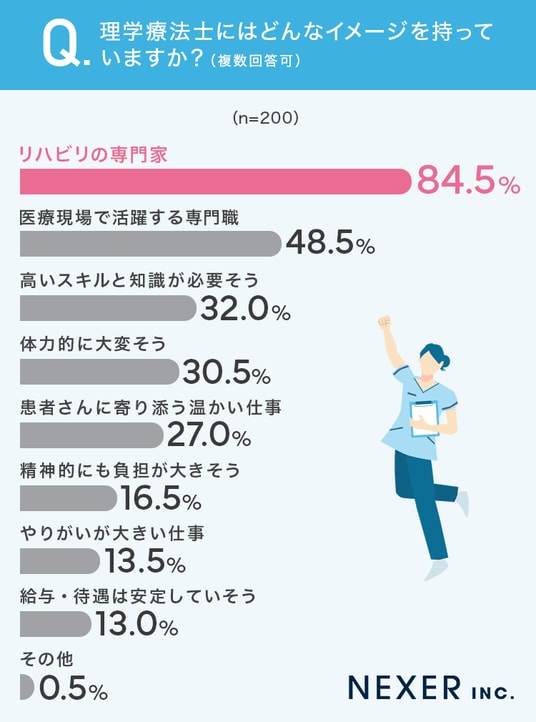 ■84.5%が、理学療法士のイメージは「リハビリの専門家」