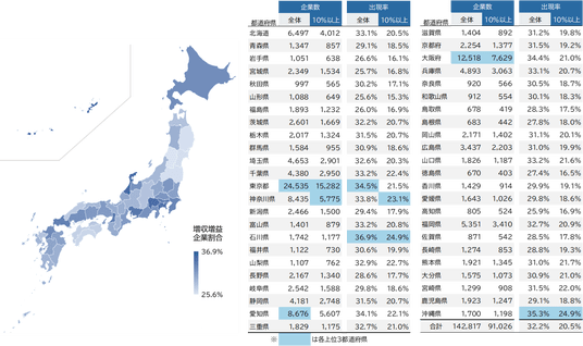 増収増益企業の出現率トップは「石川県」の36.9%