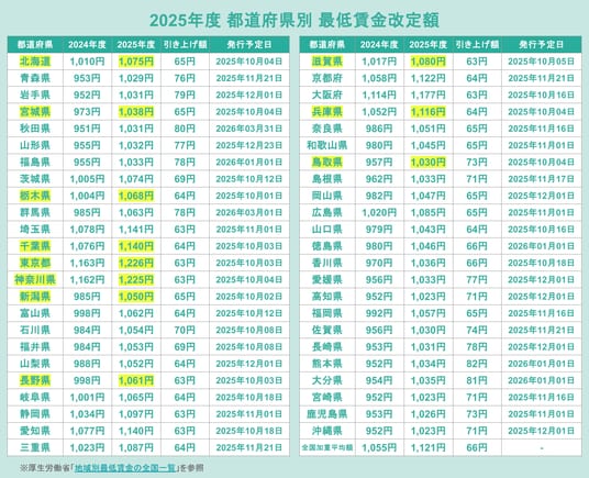 ※最低賃金の改定については厚生労働省「地域別最低賃金の全国一覧」を参照