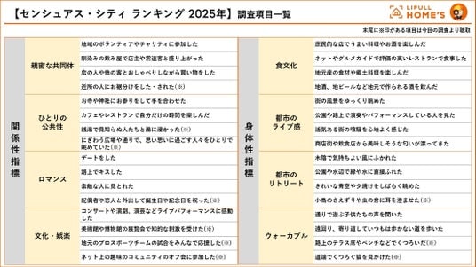 事業を通して社会課題解決に取り組む株式会社LIFULL(本社:東京都千代田区、代表取締役社長:伊東祐司、東証プライム:2120、以下「LIFULL」)の社内シンクタンク「LIFULL HOME'S総研」は、最新研究報告書『Sensuous City(センシュアス・シティ) [官能都市] 2025』を2025年9月24日(水)に発刊しました。この「センシュアス・シティ2025」の総合ランキングをもとに、東日本エリア(北海道・東北地方、関東地方、東海甲信越地方)で再集計した東日本編のランキングを発表します。
