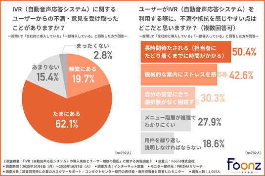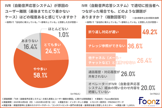 そこで今回、Foonz株式会社(https://foonz.co.jp/)は、企業のカスタマーサポート/コンタクトセンター部門の責任者・運用担当者を対象に、「IVR(自動音声応答システム)の導入実態とユーザー離脱の要因」に関する実態調査を実施しました。