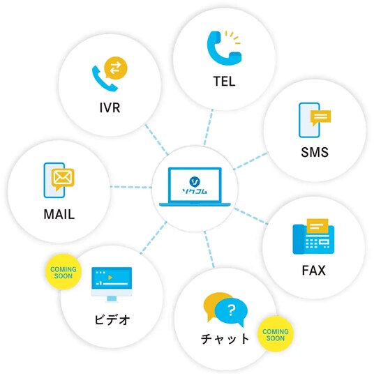 ソクコムは、お客様とのコミュニケーション手段をワンプラットフォームにし、売上向上と生産性向上を目的とするサービスです。