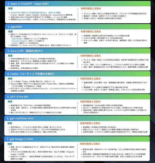 DevDayとはOpenAIが毎年開催する開発者向けカンファレンスです。AIを誰もがアイデアを形にできる実用ツールへ進化させる方針が示されました。