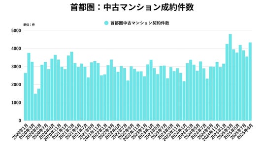 一方で、首都圏周辺の神奈川県、千葉県、埼玉県では、市場の構造にやや変化が見られます。これまで好調だった築浅マンションの成約数の割合が徐々に減少する一方、築年数の経過した中古マンションの成約割合は増加しています。この傾向は、マンション価格の高騰が原因で、一般所得層が手の届く物件の選択肢が狭まっていることを示しています。例えば、近年の再開発や人気沿線エリアの需要増に伴い、新築物件の坪単価が大幅に上昇しているため、年収の平均的な世帯にとっては手が届かない価格帯の物件が増えている状況です。その結果、比較的価格が抑えられた築古物件やリノベーション済み物件に注目が集まる傾向が強まっています。