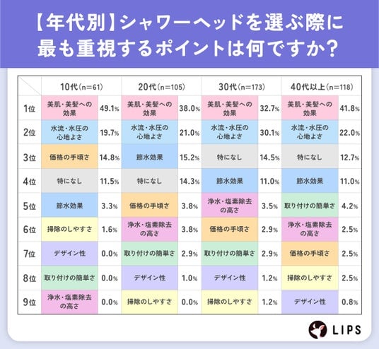 株式会社AppBrew(本社所在地:東京都文京区、代表取締役:松田崇)が運営する美容プラットフォーム「LIPS(リップス)」は、「シャワーヘッド」についてLIPSユーザー457名を対象に、アンケート調査を実施しました。今回の調査では、シャワーヘッドを選ぶ上での重視点から情報収集の方法まで、ユーザーの具体的な行動や価値観を調査しました。