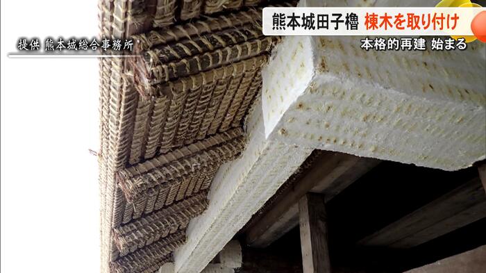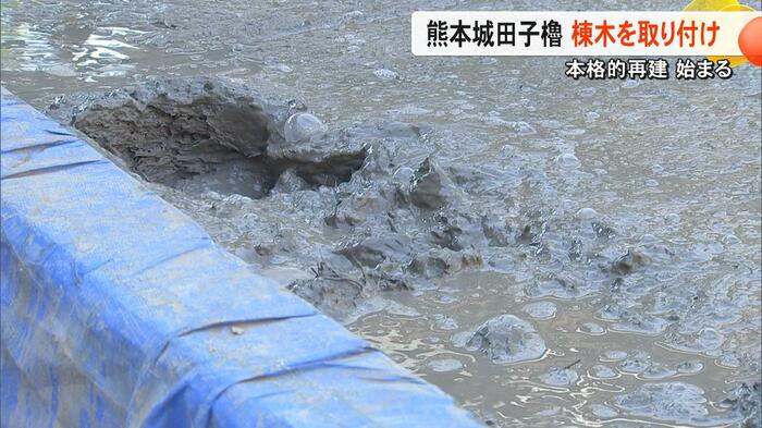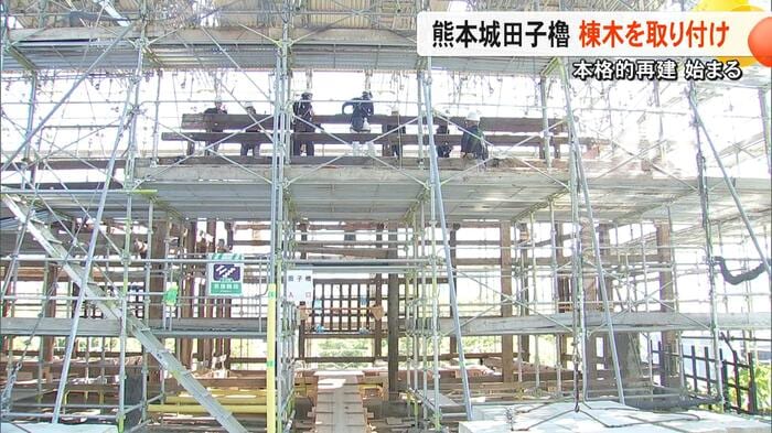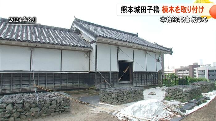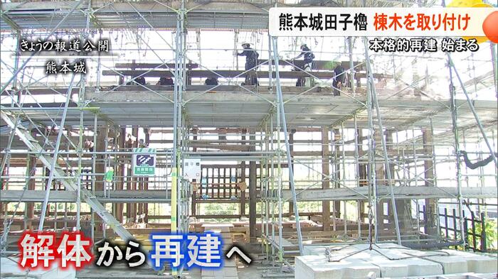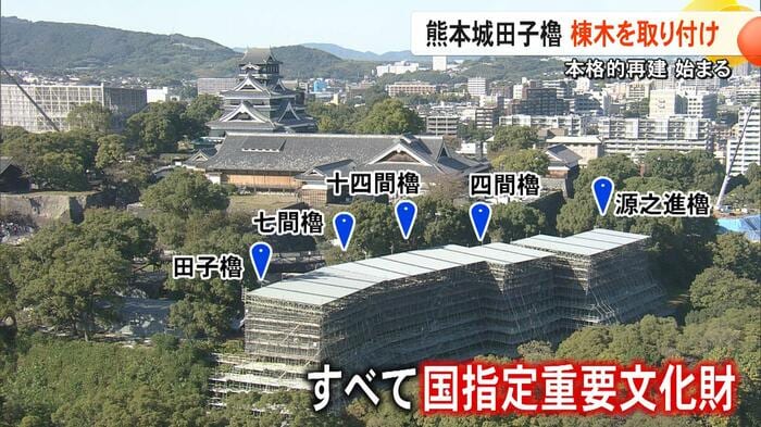 9年前の熊本地震からの復旧を目指す熊本城の中でも、熊本市役所屋上の情報カメラから見て、天守閣の右手前にある国指定重要文化財の田子櫓の本格的な再建が始まった。