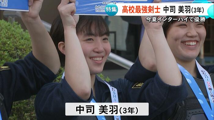 2025年の高校剣道・三大大会の一つ玉竜旗で優勝。さらにインターハイでは個人で優勝と、学校初の快挙を達成。そして、国民スポーツ大会では熊本代表として出場し、26年ぶりの頂点に立った中司美羽選手。