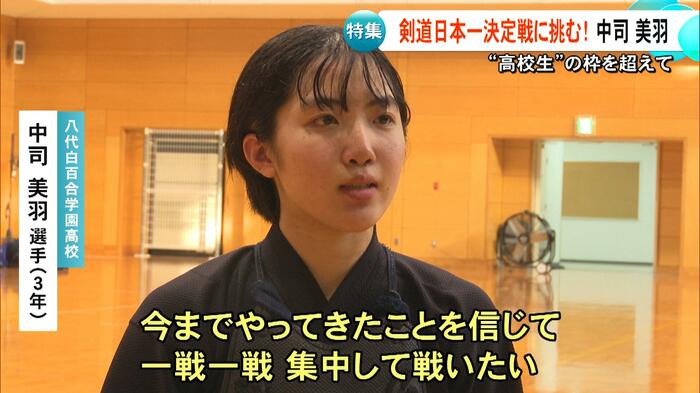 この3年間、家族と離れる中で、心身ともに成長を遂げてきた中司選手。8月には、熊本県選手権で熊本県警の渡邊タイ選手を破り、剣道日本一を決める『全日本女子選手権』への切符を初めてつかみ取った。