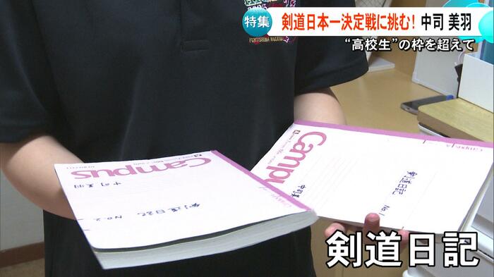 その心の強さや試合に臨む気構えをつくる上で大切にしているのが、剣道日記。大会で得た課題や自分の考え、思いがつづられていて、頭の中を整理することに役立っているそうだ。