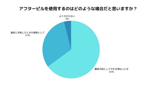 「避妊手段として考えたことがある」と答えた人は35%にとどまり、日常的な避妊方法ではなくもしもの時の最終手段として認識されていることがわかりました。