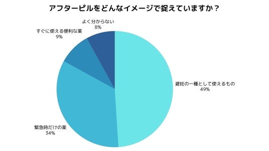 さらに、「アフターピルをどんなイメージで捉えているか」という質問では、約半数(49%)が「避妊の一種として使えるもの」と回答。