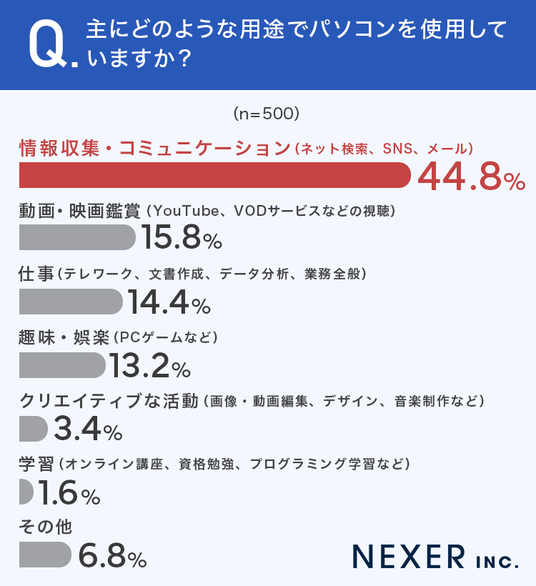 ■パソコンの主な用途、44.8%が「情報収集・コミュニケーション」