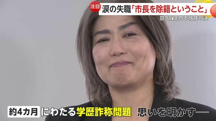 失職決定後に応じた取材に対し、田久保氏は約4カ月にわたった学歴詐称問題について、時折、涙を交え自身の思いを明かした。