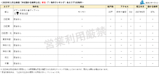 10月公表分は、2025年10月9日時点で販売もしくは販売予定が確認できた物件を対象としています。