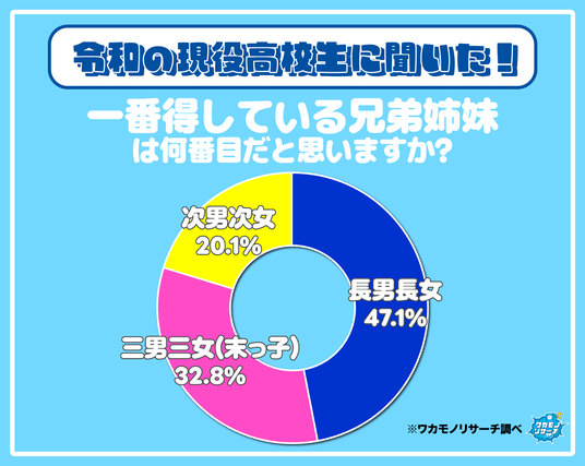 「一番得している兄弟姉妹は何番目だと思いますか?」というアンケート調査を実施。