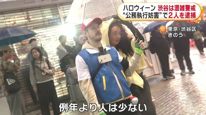 ハロウィーン当日の31日夜は雨の中、東京・渋谷は多くの人で混雑した。