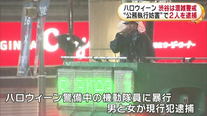 警視庁によると、ハロウィーンの警備にあたっていた機動隊員に対し、暴行を加えた公務執行妨害の疑いで男と女が現行犯逮捕された。