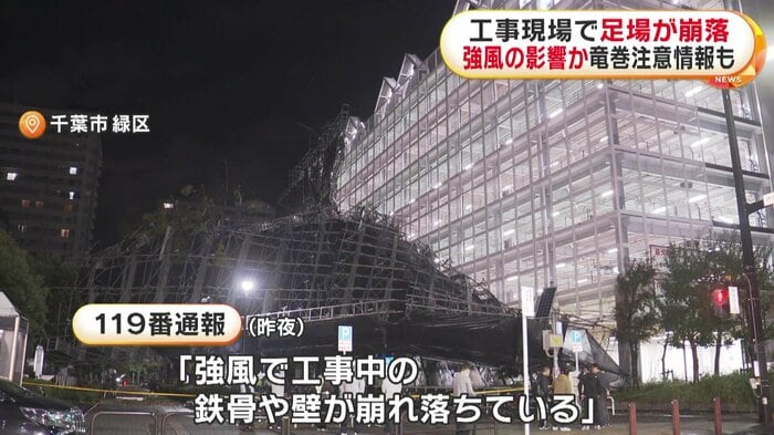 千葉市で、工事現場の足場が崩れる事故があった。