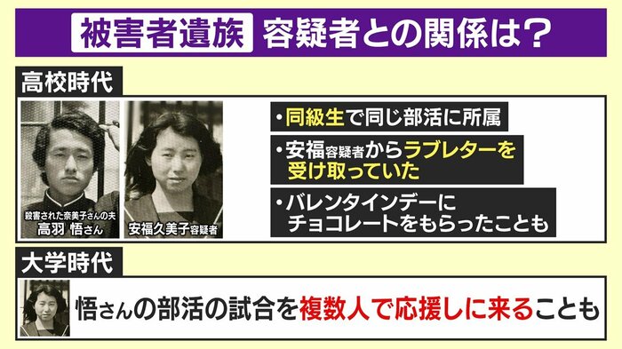 同級生だった高校時代、悟さんに好意を寄せていたという安福容疑者。