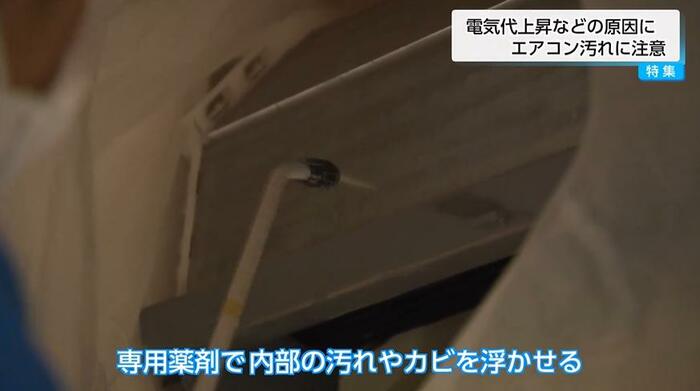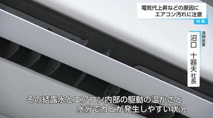 さらに、夏の冷房使用時にはエアコン内部で結露が発生する。沼口さんは、「夏場は冷房を使うことで、中で結露水が発生する。その結露水とエアコン内部の駆動の温かさと、水分とカビが発生しやすい状況」と説明する。