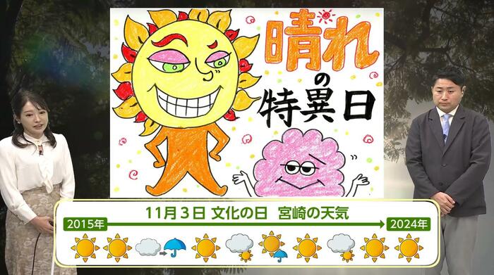テレビ宮崎の夕方ニュース「#Link」でお天気コーナーを担当している気象予報士・古山圭子さんが天気の豆知識を解説するコーナー。今回は、「11月3日の天気」についてお伝えします。