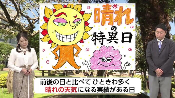 10年のうち実に7回も晴れの天気になっていることがわかります。「特異日」の名の通り、データがその言葉を裏付けています。なぜ特定の日が晴れやすいのか、そのメカニズムは複雑ですが、季節の移り変わりの中で、その時期に特有の気圧配置が現れやすいことが一因と考えられています。