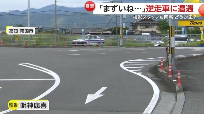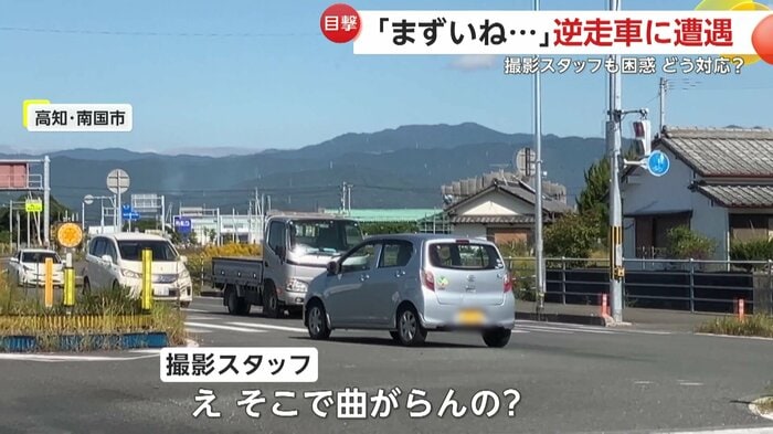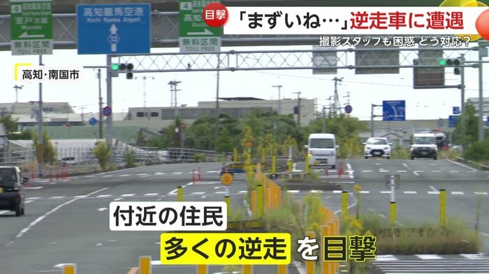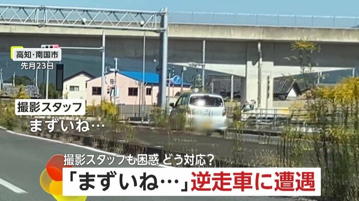 高知・南国市にある高知龍馬空港近くの道路で10月23日、FNNのカメラが捉えたのは、中央分離帯を挟んで対向車線を走る逆走車だ。