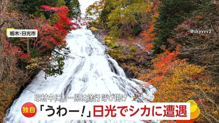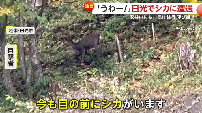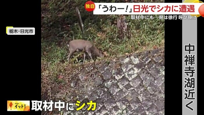 撮影者は観光名所・中禅寺湖周辺にいて、リモート取材を受けている最中に斜面にいるシカを目にしたということだ。