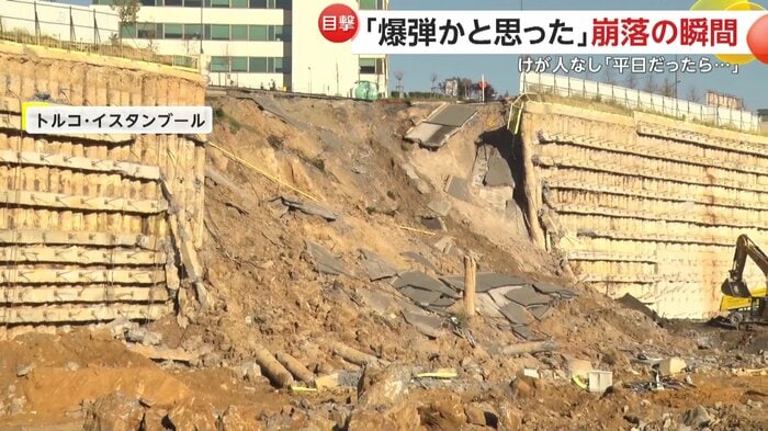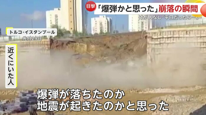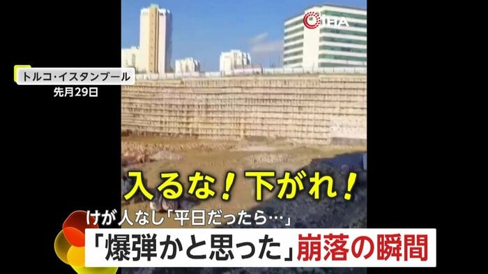 トルコ・イスタンブールの工事現場で撮影されたのは、大きな音を立てて崩れ落ちる壁。