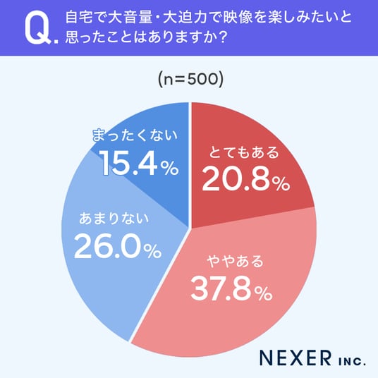 次に、自宅で大音量・大迫力で映像を楽しみたいと思ったことはあるかを聞いてみました。