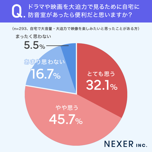 続いて、ドラマや映画を大迫力で見るために自宅に防音室があったら便利だと思うかを聞いてみました。