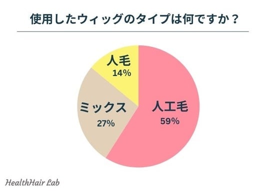 使用した医療用ウィッグのタイプについて伺ったところ、『人工毛(59%)』『ミックス(27%)』『人毛(14%)』という回答が集まりました。