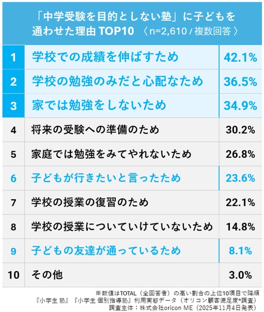 本レポートは、オリコン顧客満足度(R)調査 11月発表『小学生 塾/個別指導塾』 『中学受験 塾/個別指導塾/公立中高一貫校対策 塾』の2025年調査対象者に別途聴取したデータをまとめたものです。