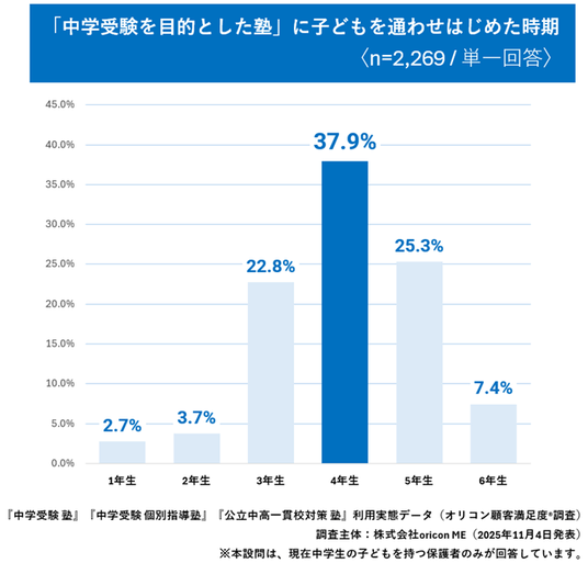 「4年生」が37.9%で最多 「中学受験を目的としない塾」に比べて通い始めが早い傾向に