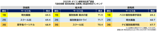 『高校受験 個別指導塾 北関東』都道府県別ランキング(2025年 オリコン顧客満足度(R)調査)