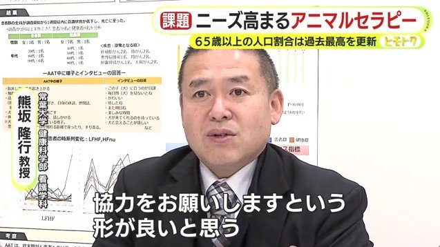 このため、アニマルセラピーの効果について研究を重ねる常葉大学健康科学部の熊坂隆行 教授は、活動を多くの人に知ってもらうことに加え「セラピー犬を育てるには多くの費用と時間がかかる。そういうセラピー犬を育成するための費用を支援してくれる団体、企業の力が必要」と述べた上で「いろいろな角度から『このような効果があるので協力をお願いします』という形が良い」と指摘する。