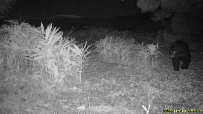 富山県内では11月4日も各地でクマの目撃情報や痕跡の発見が相次いでいる。富山市大野に設置されたAIカメラには、午前3時頃に成獣のクマ1頭が藪の中を歩く姿が記録された。