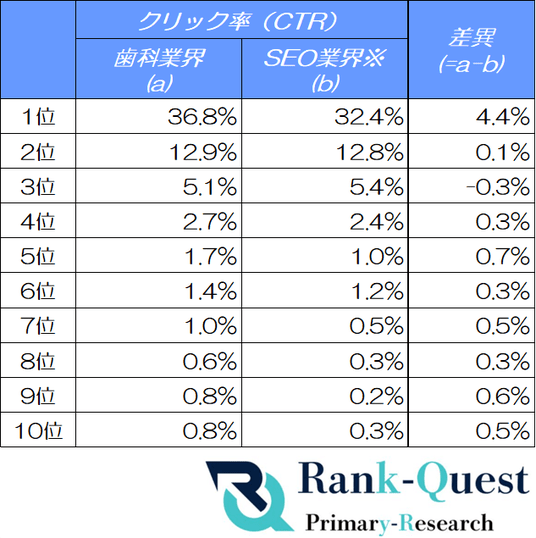 https://rank-quest.jp/column/column/how-to-seo/ SEO対策支援実績4,300社のランクエストが歯科業界の1~10位の検索順位毎のクリック率を分析