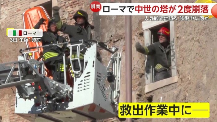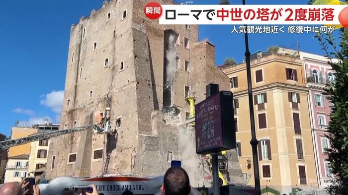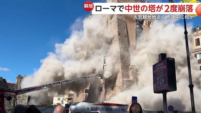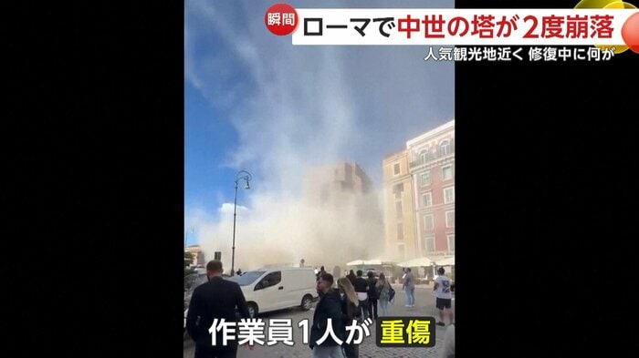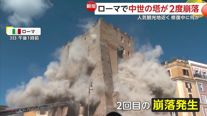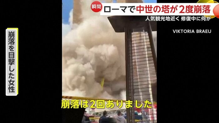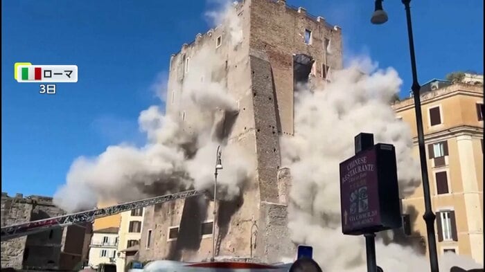 イタリアの首都・ローマで3日に起きた、崩落事故の瞬間を捉えた映像。