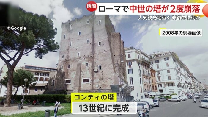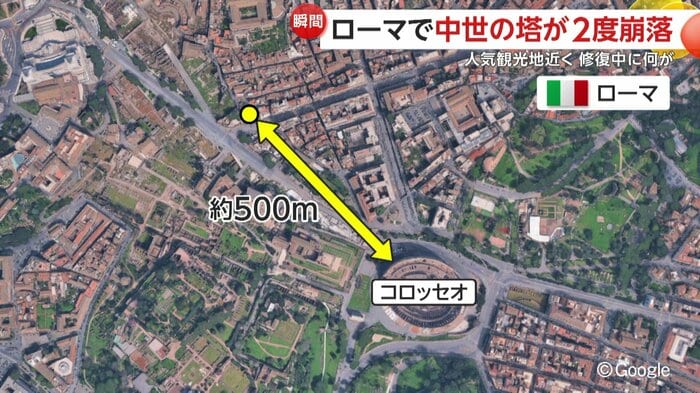 現場はローマにある人気の観光地「コロッセオ」から直線で約500m北東にある「コンティの塔」だ。